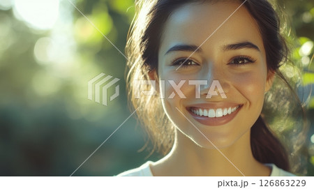 Serene Young Woman in Close Up Portrait