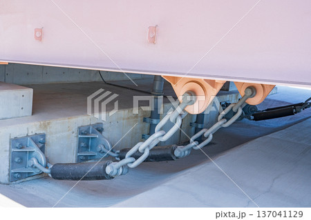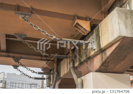 橋の下部に設置された落橋防止装置【緩衝チェーン】