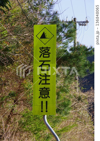 落石注意の看板