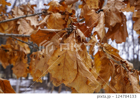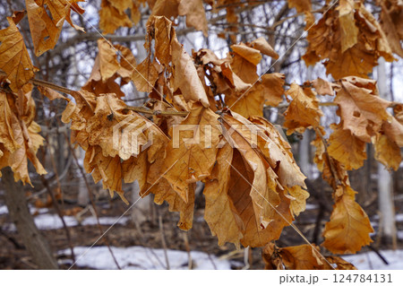 新芽が出るまでくっついている柏の葉っぱ