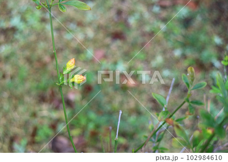春の日本の元荒川の河川敷に咲く黄色いオウバイの花