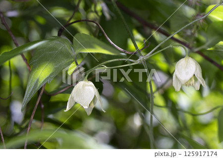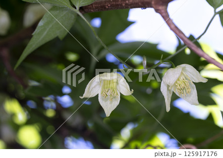 ボタンヅル:白い花を咲かせて垂れ下がる蔓/長野県・八千穂高原・8月