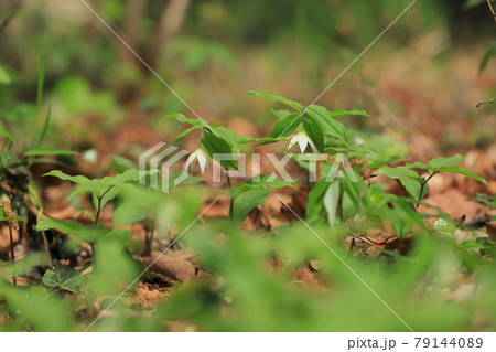 森林の中で咲くチゴユリ