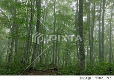 朝霧架かるブナの森ー梁取のブナ林 福島県只見町
