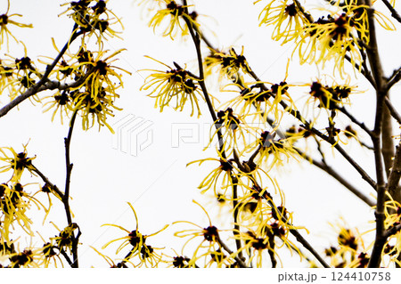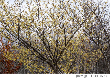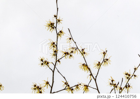 北国の春 岩手県花巻市で春一番にまんずさくべと咲いたマンサクの黄色い花