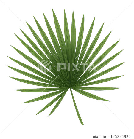 Elegant Green Palm Leaf With Intricate Fan-Shaped Structure Displayed on a White Background