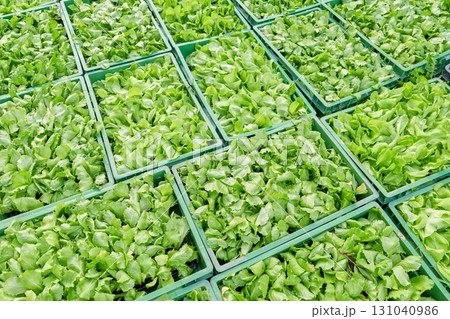 Close up of fresh green lettuce leaves with crisp texture and vibrant colors