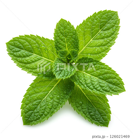 Fresh mint leaves mockup, isolated on white. Herbal garnish template. Natural green plant design for food, tea, or culinary visuals.