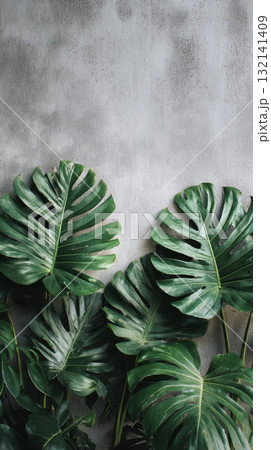 Vibrant Green Leaves on a Textured Gray Background Creating a Natural and Calming Atmosphere