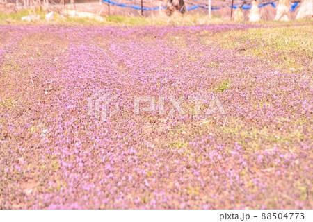 畑を埋め尽くす赤紫色の花