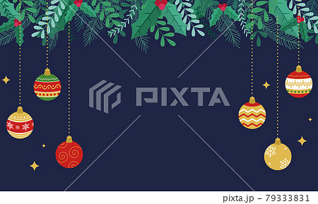 クリスマスのオーナメントともみの木のフレーム背景のベクターイラスト(コピースペース)