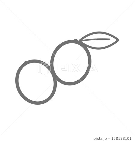 金柑の線画アイコン シンプルなアウトラインの柑橘フルーツ素材