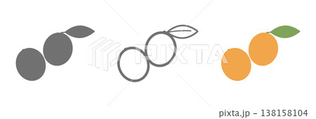 金柑のアイコンセット 白黒・線画・カラーの3種類の柑橘フルーツ素材