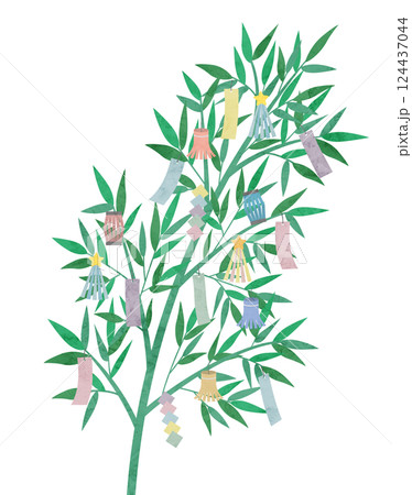 七夕飾りの水彩風イラスト、笹の葉