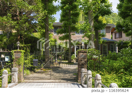 鎌倉市 北鎌倉の葉祥明美術館正門と新緑