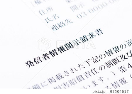 発信者情報開示請求イメージ(発信者情報開示請求書と虫メガネ)