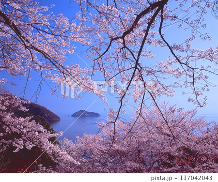 奥琵琶湖国定公園に咲く満開の桜と琵琶湖
