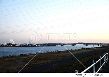 【東京・荒川下流】荒川河口橋と葛西海浜公園と観覧車