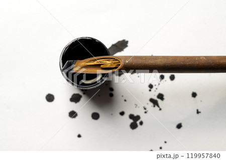Two calligraphy reeds covered ink on the table
