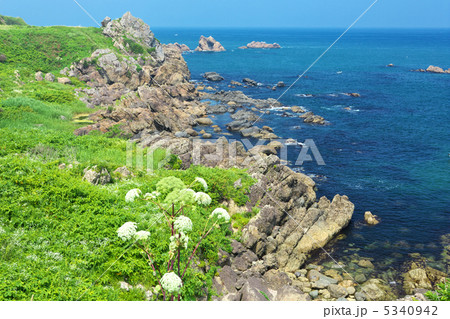 「青森県」初夏の花咲く葦毛崎の風景・種差海岸