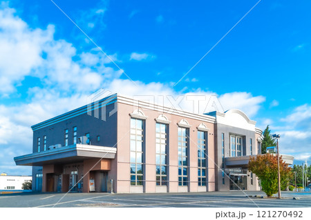 青空に映えるファミリーホール (葬儀式場のイメージ)