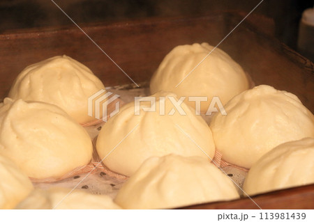 蒸しあがったホカホカの豚まん あったかい肉まん
