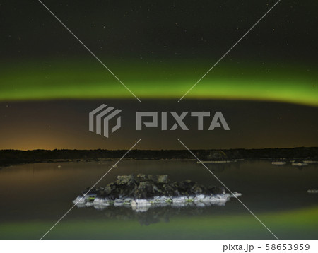 An Aurora Borealis arch over the Blue Lagoon
