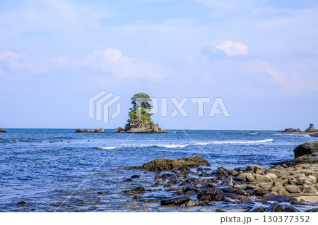 高岡市、雨晴海岸より眺める富山湾の女岩