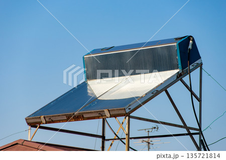 屋根の上の太陽熱温水器