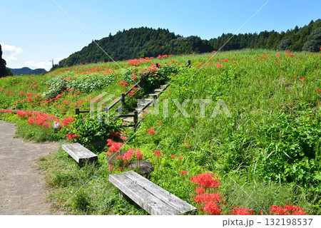 彼岸花の群生地、蓑沢彼岸花公園、栃木県、