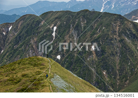 初夏の上越国境・蓬峠付近を行く登山者