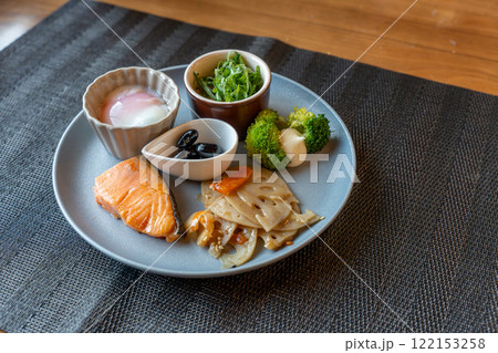 焼き鮭のヘルシーワンプレートごはんと崩し豆腐のお味噌汁