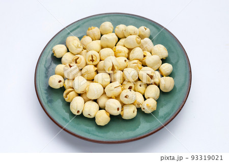Dried lotus seeds in bamboo plate