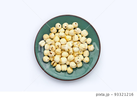 Dried lotus seeds on white background.