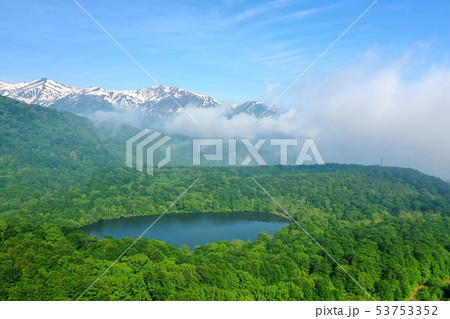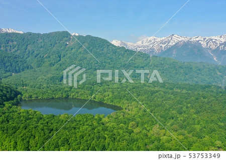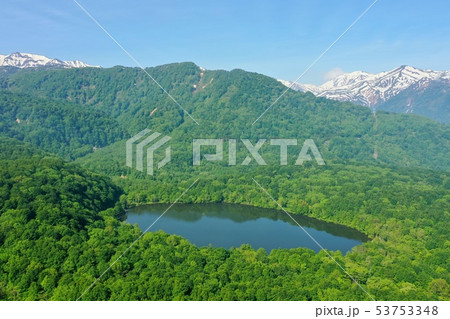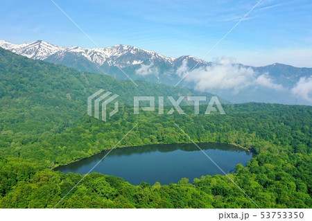 初夏の新潟県糸魚川市の蓮華白池を空撮