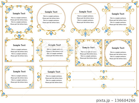 ビンテージカリグラフィ風フレーム素材108<ばらフレーム・飾り罫・飾り枠・花>