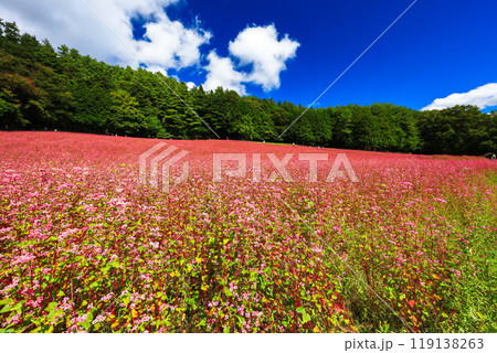 森と赤そばの花畑