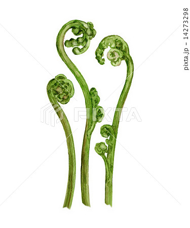 ワラビの手描きイラスト/春の山菜
