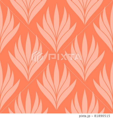 Seamless pattern with a pattern of the silhouette of tulips and leaves. Design in coral, orange for printing, packaging, fabric. Electric Tangerine. Damascus styling. Vector