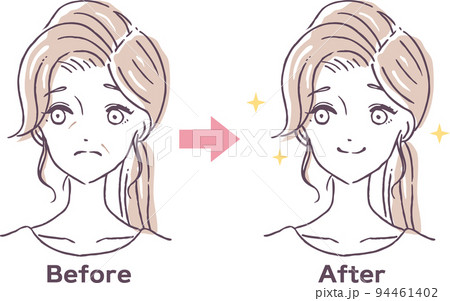ほうれい線・しわに悩む女性の改善ビフォーアフターイラスト素材