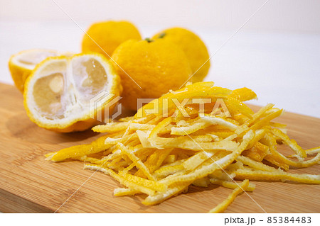 柚子とゆずの皮の千切り(ゆずジャムやゆずシロップ用)