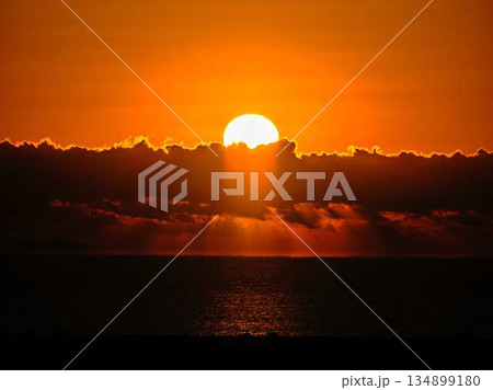 東シナ海の夕景 口永良部島とあかね雲(夏