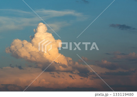 Cumulus clouds at sunset. Beautiful sky with clouds before sunset and after sunrise