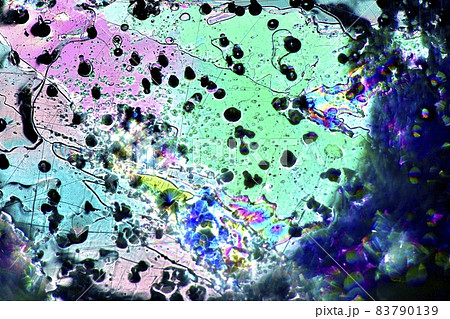 太陽光を薄氷りに偏光板(フィルター)を使い通して出来た色模様