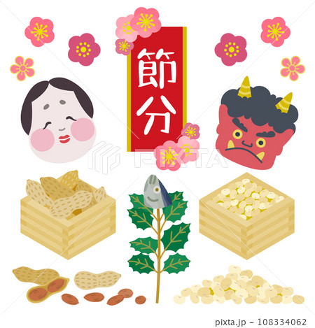 節分のシンプルでかわいいアイコンセット(落花生と大豆)