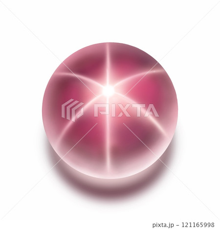 スターローズクォーツのイラスト、スターローズクォーツのカボション、薔薇石の猫目効果のある石のイラスト
