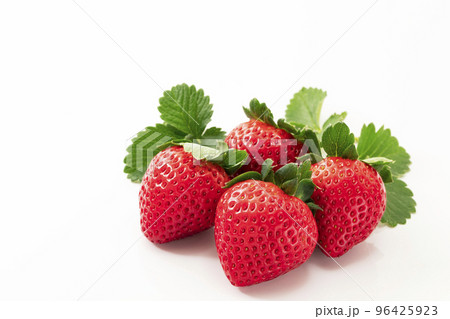 白バックで葉を添えたイチゴ