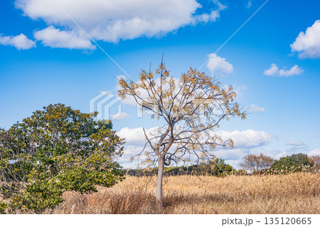 冬の淀川河川敷に生えるセンダンの木 大阪府枚方市