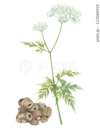 川芎(センキュウ)漢方薬の水彩画イラスト