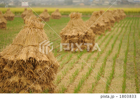 わら塚が並ぶ田